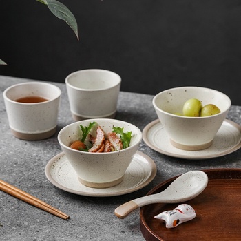 Hot bán Nhật Bản Bộ đồ ăn màu be gốm thiết lập dao kéo sứ muỗng tấm và bát đặt cho nhà hàng